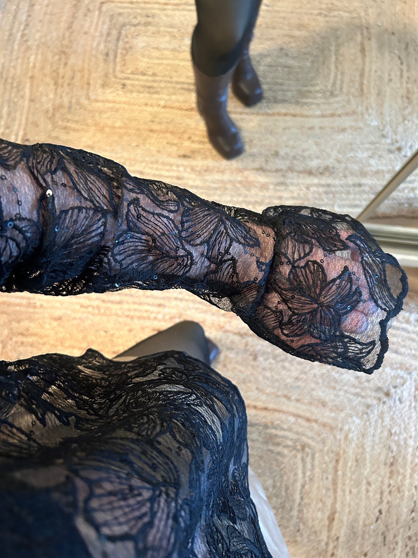 Blouse en dentelle à sequins, parfaite pour briller pendant les fêtes !